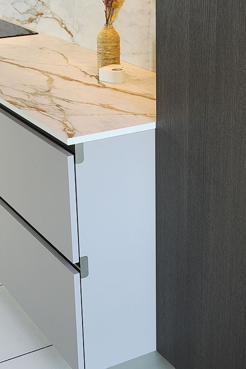 Nous travaillons directement avec des usines italiennes pour la fabrication des meubles ainsi que des plans de travail en pierre, quartz ou céramique, sans intermédiaires, pour garantir la transparence des prix et une qualité constante.